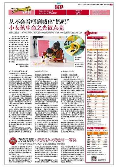 福彩公益金22年持续守护,“孤儿医疗康复明天计划”点亮3000名孤残儿童生命之光 在深圳市龙岗区福利中心有一个叫翊彤的小女孩,她从最初的生命体征不稳,到后来学会了吞咽、学会了笑、学会了喊“