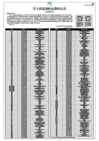 关于清退预收电费的公告(2026年)