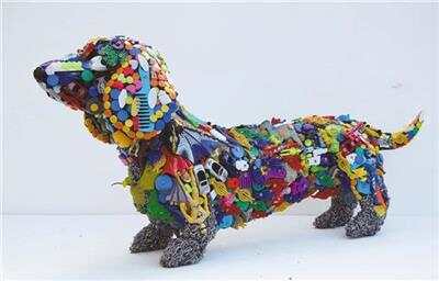 艺术家罗伯特·布拉德福曾尝试用被孩子们丢弃的玩具重新再利用,设计出一些全新的玩具,比如一些机器人或小动物。这一组作品则是狗。