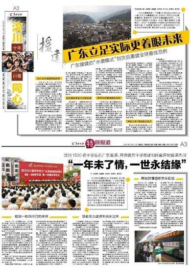 陈茂辉向羊城晚报记者介绍,由于汶川地形复杂,无法发展工业,广东援建工作组还开创了“飞地工业园”的特色,在成都金堂县划出了十平方公里的土地,大大增加了汶川全县的财政收入,并解决了不少就业问题。