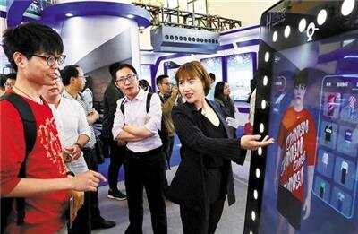 品博会上,参观者体验互联网智能试衣镜 新华社发
