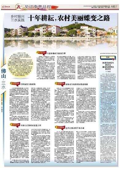此外,三水还引导村居根据自己不同的基础发展“新型农业”,包括发展乡村旅游、现代农业、文化养生、农村电子商务等绿色经济。