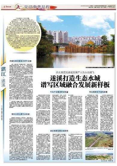 文全良波 袁增伟 陈超铭 蔡明打造湛遂半小时生活圈、铁腕治水让青山绿水成为常态、创建特色乡村……遂溪正在悄悄地发生巨变,昔日的传统农业县,正朝着水生态文明新城迈进!这是记者连日来深入遂溪采访的最大感受。
