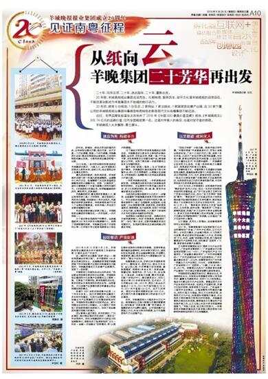 20年前,羊城晚报报业集团应运而生。扎根岭南,服务民生,坚守文化是羊城晚报的自我定位;不断改革创新成为羊晚集团永不枯竭的前行动力。