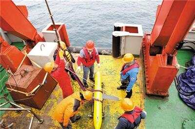 “海翼”号水下滑翔机准备布放 新华社发
