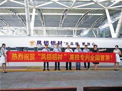 8月8日,由广东凤铝铝业有限公司冠名的“凤铝铝材号”高铁专列在广州南站全国首发!凤铝铝业建材销售公司总经理梁明贤表示,选择高铁列车冠名,有利于提高凤铝铝材品牌推广的精准性和效率,全方位展示凤铝铝材的实力及凤铝工业铝材的发展。“凤铝铝材号”高铁专列运行线路贯穿沪汉蓉、武广深、南广、贵广线。列车运行范围遍布华南、西南、华东、华中、华北地区,覆盖上海、南京、杭州、武汉、重庆、成都、长沙、南昌、合肥、福州、厦门、广州、南宁、贵阳、昆明等主要城市站点,对于进一步扩大“凤铝”的辐射区域,提升“凤铝”的知名度、美誉度和影响力产生重要的促进作用。