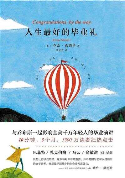 《人生最好的毕业礼》(徐之野译,南海出版公司),以乔治·桑德斯在母校美国雪城大学的毕业演讲内容为主,附以社会各界人士对即将步入社会的大学毕业生的忠告与建议,堪称一本短小精悍的人生指南。