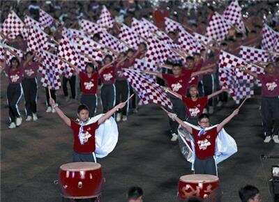 在10月份举行的首次立体学区运动会上,17所学校派出各具特色的方阵 羊城晚报记者 汤铭明 摄
