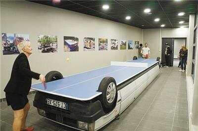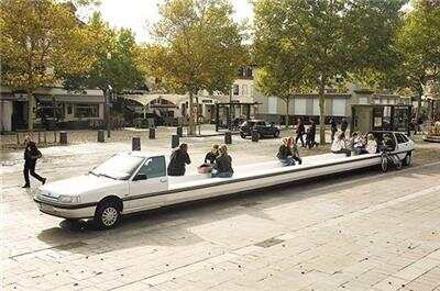 法国艺术家Benedetto Bufalino眼中,艺术就是创意的游乐场。他可以利用手上能利用的所有东西创造出各种颇具实用功能的有趣物件,比如将水泥搅拌车的大滚筒贴上反光片,改造后这辆车就像在迪斯科舞厅里的旋转幻彩灯那样产生特别的光效。又或者他给一个废弃的挖掘车车厢装满水,将其变成巨大的金鱼缸。Benedetto Bufalino在充分利用废弃的汽车方面也提出了许多天才的想法:把一辆废旧货车的车顶变成了网球场,或者把废弃的豪华汽车变成路灯、乒乓球桌、公园长凳、露天热水浴缸……甚至是一个养鸡场。他还试过将一辆破轿车改造成一个可以内装火炉的披萨烤箱。