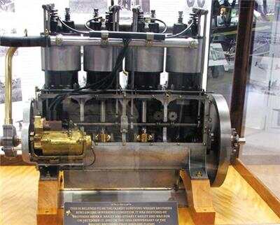 莱特兄弟与几家发动机制造商联系,但没有一家能满足他们的要求。于是,兄弟俩指导自己的自行车技师查尔斯·泰勒(1868-1956),用6个星期的时间在自行车生产车间造出世界上第一台航空发动机。为了减轻重量,用铝作缸体。