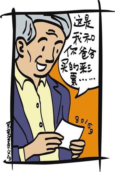 大家在下面哈哈大笑,说这两亲家对彩票太痴迷,什么都联系到彩票。尹伯却拿出一张彩票,和文伯相视一笑,走到尹健和文馨面前,郑重地将彩票交到文馨手中说:“这是我和你爸合买的彩票,中了二等奖,作为贺礼送给你们,祝你们新婚快乐,百年好合。”文馨惊讶地睁大眼睛,惊喜来得太突然,激动得差点接不住彩票。 (熊燕)