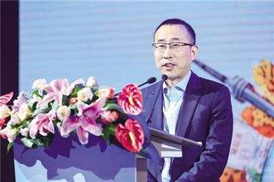 蒙牛集团总裁卢敏放先生于“健康中国营养+联盟”启动会上进行“健康中国企业社会责任”主题演讲
