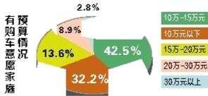调查结果显示,超过10%的家庭有购车计划,价格在10万元—15万元之间的车最受青睐。10.7%的受访居民家庭2019年有购车意愿,其中城镇家庭的比重为11.2%,农村家庭为9.5%。有购车意愿的消费者中,42.5%倾向于购买10万元—15万元的汽车,32.2%倾向购买10万元以下汽车。倾向于购买15万元—20万元、20万元—30万元和30万元以上汽车的,分别占13.6%、8.9%和2.8%。