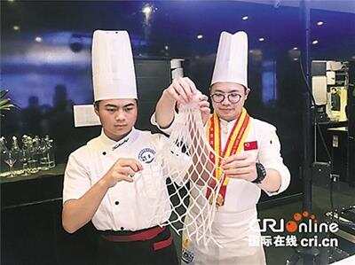 其中,“气球上切菜”令观看者惊叹不已:厨师蒙住双眼,在气球上将土豆片切成可穿过针孔的细丝。英国前国际发展部国务大臣麦克·贝茨勋爵一边赞叹,一边掏出手机录下全过程。