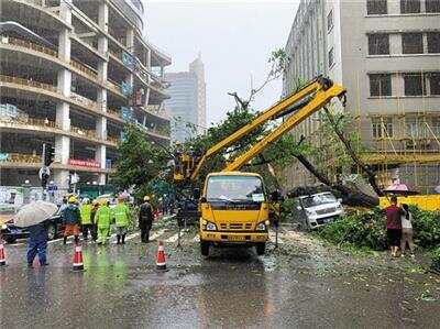 “雨下着下着,树就倒到马路上了。”在越秀区海印缤缤广场工作的保安王先生,回忆着6月24日近14时自己工作的广场西南门发生的一幕。当天,该广场西南门,即一德路与侨光西路交界处,一棵大树在大雨中忽然倒向马路。羊城晚报记者14时许来到现场时发现,倒塌的大树几乎占据了一德路所有的行车道,绿化工人出动吊机和电锯,打算尽快将占道的大树锯断运走。