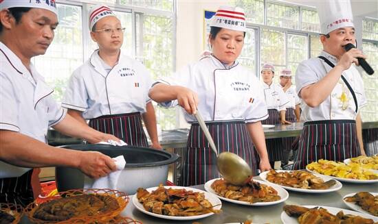 “粤菜师傅”工程培训班的学员们正在实训室进行培训