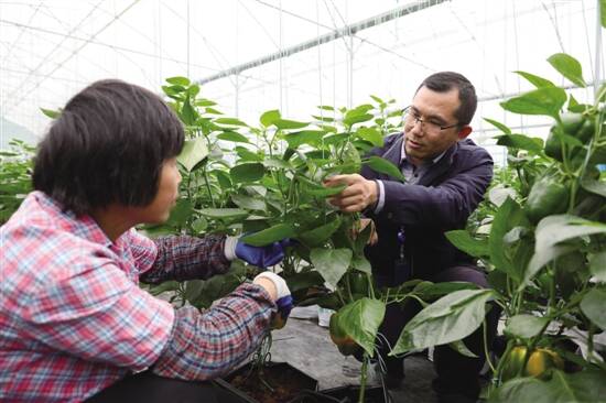广东电网中山供电局高锋指导当地农户如何种植彩椒 孙嘉彪 摄