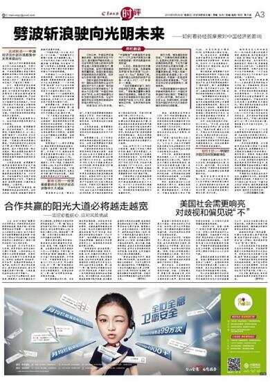 当中国高扬合作之帆,与各国共享发展机遇、共创美好未来的时候,美国一些人仍然陷入零和博弈、你输我赢等陈腐观念难以自拔,把互利共赢的国际贸易看成是美国“吃亏”的买卖,把优势互补的经贸合作看作“不公平竞争”,到处挥舞加征关税大棒,实施长臂管辖,搞画地为牢的贸易保护主义,给艰难复苏的世界经济蒙上阴影。