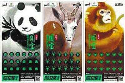 此款即开票共3款票面设计,单张面值20元,总共有高达18次中奖机会,具有较高中奖率,最高奖金100万元。玩法以找中奖符号为主,游戏符号与主题高度匹配,易被辨识记忆,符合购彩者的游戏习惯。以大熊猫、金丝猴、藏羚羊为票面形象,票面采用中国古典水墨晕染技法,清雅别致,格调优雅,栩栩如生。游戏规则:刮开覆盖膜,如果出现标志“国宝”,即中得该标志下方所示的金额;如果出现顶呱刮标志,即中得该标志下方所示金额的5倍。中奖奖金兼中兼得。