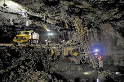 中国水电六局工程人员在700米深的江门中微子实验地下实验室进行中导洞施工 新华社发
