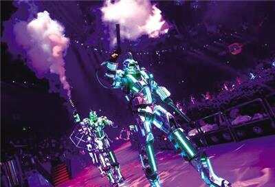 多场融合机器人、大型花车、小丑互动的欢乐巡游最受欢迎。