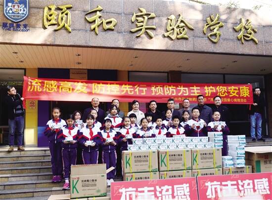 了解到这一情况后,1月12日,花城药业便向白云区明德中学和颐和实验学校共捐赠了21000支抗病毒口服液和132000片猴耳环消炎片、复方感冒灵片等能够有效防治流感的药品,同时为同学开展了流感知识的科普,双管齐下,高效保证了“防患于未然”。