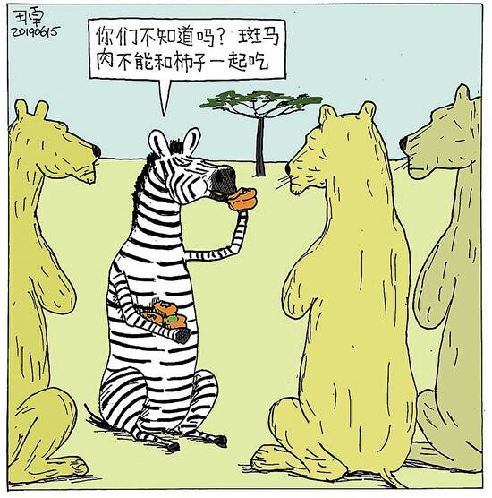你们不知道吗?斑马肉不能和柿子一起吃 (幽默画) □王原