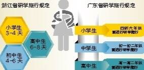 随后,浙江、广东等省份进一步出台了相关规定。比如,2018年浙江出台《推进中小学生研学旅行的实施意见》,明确学校每学年组织安排1-2次研学旅行活动,每学年合计安排研学旅行活动小学3-4天、初中4-6天、高中6-8天。同年,广东省教育厅联合12部门印发了《关于推进中小学生研学旅行的实施意见》,提到在研学旅行的主要任务方面,要将研学旅行纳入教育教学计划,要求在小学四到六年级、初中一到二年级、高中一到二年级逐步展开。