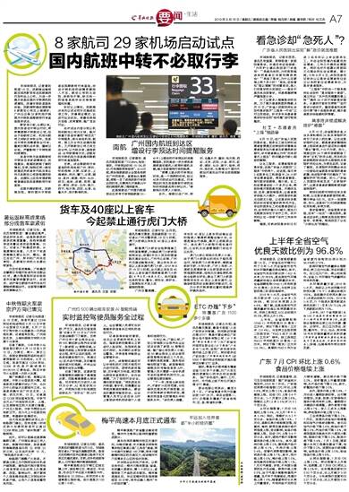 羊城晚报讯 记者唐珩报道:15日,民航局运输司副巡视员靳军号在民航局例行发布会上公布,为进一步提升旅客在国内中转乘机的便捷性,改善中转旅客服务体验,民航局明确在国航等8家航空公司及上海浦东、广州白云等29家机场开展国内中转旅客跨航司行李直挂服务试点。靳军号介绍,长期以来,国内旅客在中转出行时,常常需要跨不同航空公司,但由于各航司之间、机场与航司之间缺乏有效合作,旅客在中转机场需要取出行李、重新办理托运手续、重新过安检,严重影响了中转效率和便捷性。