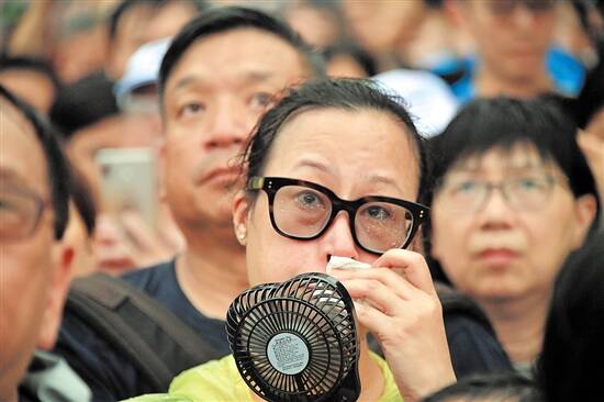 集会现场播放了一段警察妻子的一封信,朴实而感人的语句,让参加活动的香港市民流下眼泪 图/羊城晚报特派香港报道组