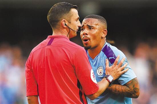 绝杀进球被取消,曼城球员热苏斯和裁判交涉 图/视觉中国