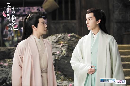 《三生三世十里桃花》中,折颜(张智尧饰)和白真(于朦胧饰)也是一对“兄弟CP”。折颜是开天辟地第一只凤凰,酿酒技术高超、善医术,在四海八荒有极高的辈分。白真是青丘白浅(杨幂饰)的四哥,从小就爱和折颜玩耍,长大后也终日与折颜厮混,折颜更是对他颇为照顾……两人在十里桃花林漫步的唯美画面,让不少粉丝锁死了这对逍遥的“神仙CP”。