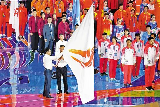 青运会会旗交接 新华社发