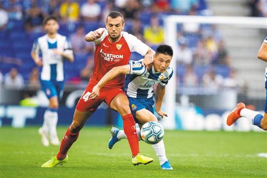 羊城晚报今晨消息 记者刘毅报道:武磊今晨在西甲首轮为西班牙人首发出场,但表现不佳,西班牙人在主场以0比2不敌塞维利亚。西班牙人在正式比赛的连续13场不败纪录被终结,上次输球是在3月30日,当时在上赛季西甲第29轮客场以0比2负于同城对手巴塞罗那。那场比赛之后,西班牙人在上赛季9场西甲和本赛季4场欧联杯资格赛保持不败。自从武磊加盟之后,西班牙人只输给过两支球队,一支是巴萨,另一支是塞维利亚。