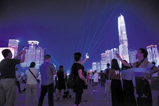 深圳福田中心区灯光秀 羊城晚报记者 王磊 摄