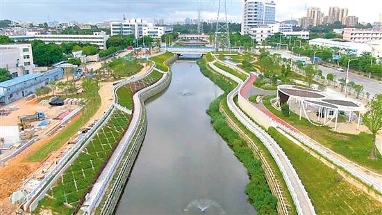 芳草茵茵、河水澄碧,灰白色亲水廊道和红色绿道贯穿其中……如今的东莞黄沙河东城河道迎来大变“脸”——不仅水环境和生态环境显著改善,而且其对雨水的吸纳、蓄渗和缓释的效果大为提高。