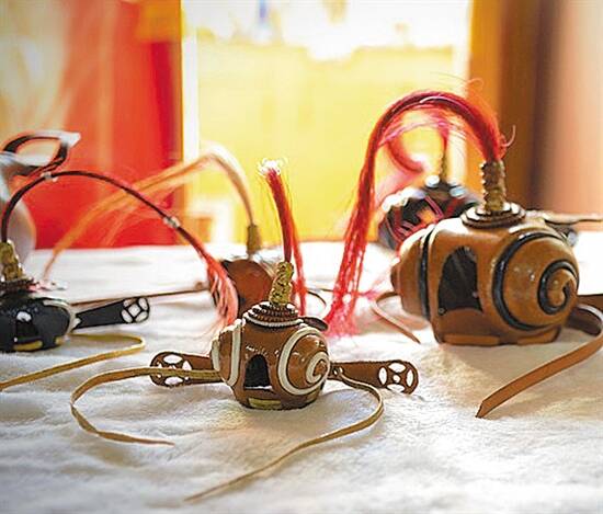 在于超的工作坊中,他会根据鹰头部的形状,选用整张牛皮中延展性较好的脊背部分,削薄到只留下表皮后用来缝制鹰帽。从外表看,鹰帽上严丝合缝,看不出任何的针线痕迹,全部隐藏在帽子内部,但为了不磨到鹰眼,藏在里面的线头部分却还要留在皮革的夹层之间。所以一顶鹰帽最少也要三天时间才能基本完成。