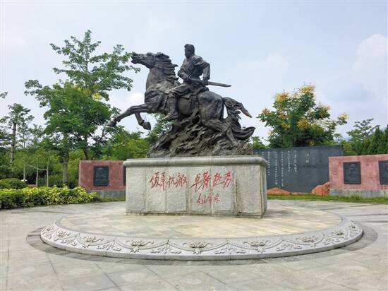 走进叶挺将军纪念园,道路两侧种植着绿树,正前方广场上立着叶挺将军执刀跃马的雕像,雕像背后是叶挺将军的著名诗作《囚歌》。“我只能期待着,那一天,地下的火冲腾,把这活棺材和我一齐烧掉,我应该在烈火和热血中得到永生。”困境中不屈的呐喊至今振聋发聩。