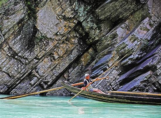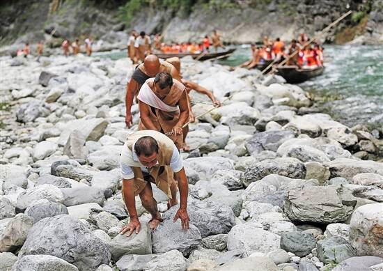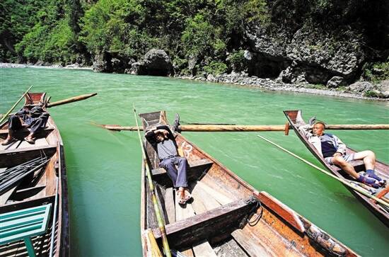 ▶纤夫们在各自的“神驳子”上午休。一艘“神驳子”往往会安排5个纤夫,分工各异,拉头纤的纤夫则负责领头喊号子,身后的同伴们则应声附和,这也是旅游亮点之一。