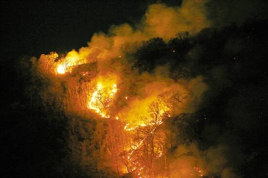 8月17日在巴西托坎廷斯州拍摄的亚马孙雨林中一处燃烧的林区 新华社发