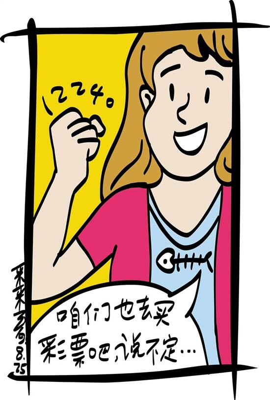 插图 采采“何弘,咱们也去买彩票吧,说不定一不留神,好运就会降临到我们身上。”潘灵下班后,一进出租屋就冲厨房内忙碌的丈夫喊。何弘笑着说:“是不是又受什么刺激了?”潘灵说:“杨大姐坚持买彩票好多年了,今天乐呵呵请大家吃巧克力,原来是中了大奖,好几十万元呢。她说月底就不来上班了,回家做点小生意,还能照顾她上高中的孩子。”
