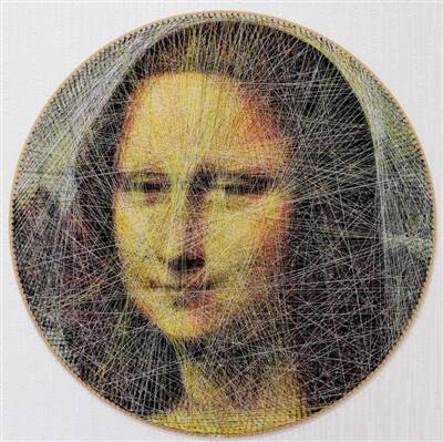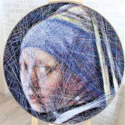 她用不同颜色的棉线有计划、有目标地重复在一个圆盘上缠绕,最终再现了《蒙娜丽莎》或《戴珍珠耳环的女孩》等经典画作上的人物形象。