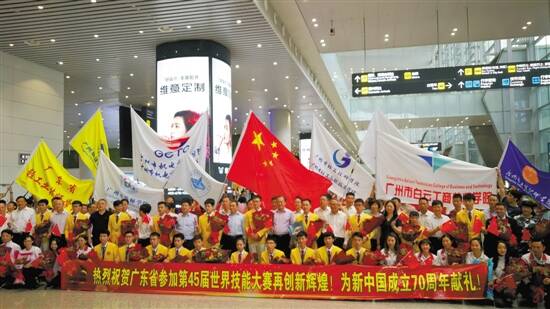 文/图 羊城晚报记者 周聪 通讯员 粤仁宣“广东牛不牛?牛!”、“世赛冠军,为国争光”……近日,广州白云机场白云机场到达大厅人声鼎沸,满眼是挥舞的国旗,在一片鲜花与欢呼声中,第45届世界技能大赛(简称“世赛”)的广东军团载誉而归(见右图)。