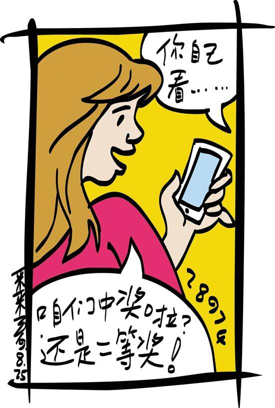 插图 采采那天,潘灵加班到凌晨3点,何弘来接她时,她期待地问:“看了这期彩票开奖信息没有?”何弘说:“我也才下班,还没顾上看呢。”“那赶紧看呀。”何弘看了一眼,又看了一眼,突然对潘灵说:“先回家。”回到家后,潘灵看何弘脸色发白,着急地问:“怎么啦?”