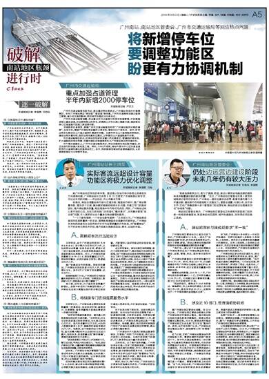对于站房与地下停车场、站房与周边交通设施、站内与站外标识存在管理不统一、协调难的问题,王洪军也直言,负责南站管理的铁路运营人员和地方管理部门人员,都应该意识到,广州南站及周边地区是一个整体的概念。他透露,最近,地方政府和铁路部门均对广州南站及其周边地区的管理,提出必须强化整体意识。
