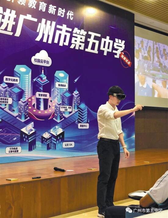 五中校长裘志坚表示,目前,五中校园的5G基站、VR实验室等各项设备已经完成装建,高一高二年级课室将全部建成智慧课室。