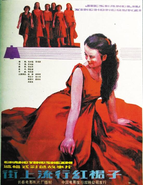 如果说,《赤橙黄绿青蓝紫》是从观念的角度给工人们“松绑”,那么1984年拍摄的影片《街上流行红裙子》,则是为工人们的爱美之心发声,并且大胆地探讨了新时代工人应该以怎样的心态对待“劳模”这一身份和荣誉的问题。该片号称“我国第一部时装片”,讲述了纺织厂女工陶星儿(赵静饰)因享受了社会和工厂对劳模的优待,而遭到工友们的误解。陶星儿自己也受困于“劳模”这一身份,行为举止处处考虑“影响”,就连心爱的红裙子也不敢穿。最终,在工友的鼓励下,陶星儿毅然穿起了红裙子,在公园上演“斩裙”一幕,解放了爱美的天性,展现了真实的自我。