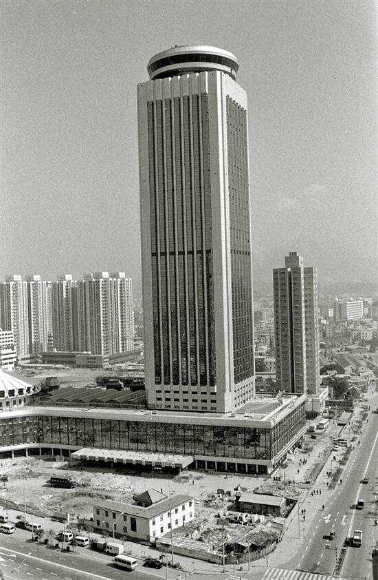 1985年年底竣工的深圳国贸大厦创造了“三天一层楼”的深圳速度 新华社发
