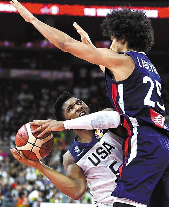 羊城晚报讯 记者周方平报道:2019国际篮联篮球世界杯进行了最后两场1/4决赛,法国队爆冷以89比79击败美国队挺进四强,而美国队在世界大赛中的48连胜终结,法国队也成为自1992年以来第七支击败美国队的队伍。澳大利亚队则以82比70战胜本届世界杯的黑马捷克队。半决赛将于明天进行,由西班牙队对澳大利亚队、法国队对阿根廷队。美国队输给法国队并不算非常“冷”的结果。美国队组队时,明星球员们就纷纷退出,整支球队星光黯淡,总体实力不足,被认为是梦一队以来,实力最差的一届美国队。而法国队则拥有戈贝尔、富尼耶、巴图姆、尼利基那等众多NBA球员,实力也相当强悍。