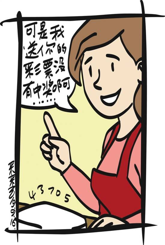 第二天赵珂去找小萌,说:“昨天送我的彩票中奖了,你赶紧做做广告,这样生意一定会火起来的。”